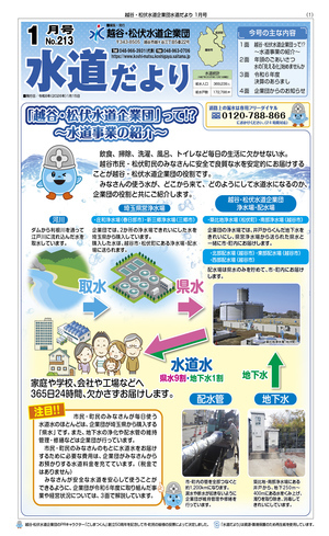 「水道だより」は、お客さまに水道事業に関するさまざまな情報をお知らせし、事業運営に対する理解と協力をいただくため、年4回(1月・4月・7月・10月)発行しています。